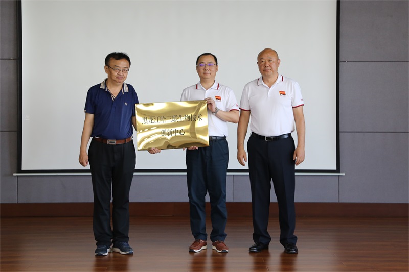 活動現場,公司為5位有著豐富實踐經驗和卓越學術成就的梁劍平研究員、游松教授、魏晶教授、陶蕾博士、石廣亮博士分別頒發哈三聯、哈三聯動保、哈三聯生物技術創新中心首席科學家和高級專家顧問聘書;并為黑龍江哈三聯生物技術創新中心有限公司授牌。